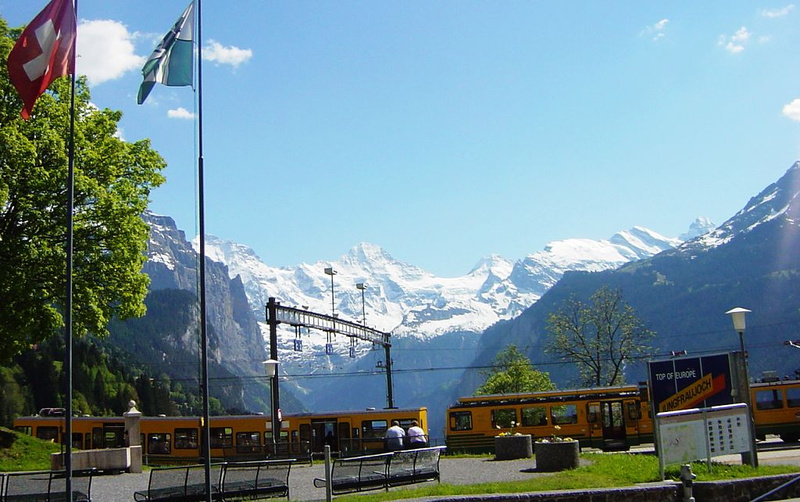 自Interlaken Ost車站搭車進來時,要注意哪些包廂開往何處?到了此站,前半部車廂將往右方到Lauterbrunnen,後半段車廂將往左方向Grindelwald走,等待鐵道員工分離前後車廂。所以Grindelwald往返Lauterbrunnen便要在此站轉車。
